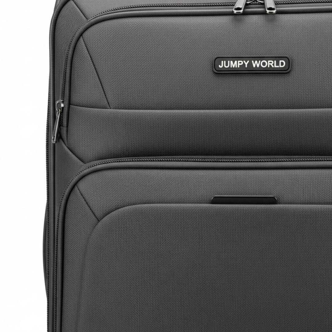 Meet your new favorite travel companion: the JUMPY WORLD Expandable Carry On. Engineered for the modern traveler, this functional softside suitcase combines a lightweight frame with robust materials. Navigate bustling terminals with ease and pack everything you need for your next adventure.