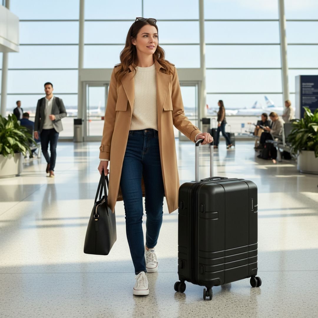 • Effortless 360° Maneuverability: Glide through airports with four silent, multi-directional spinner wheels.